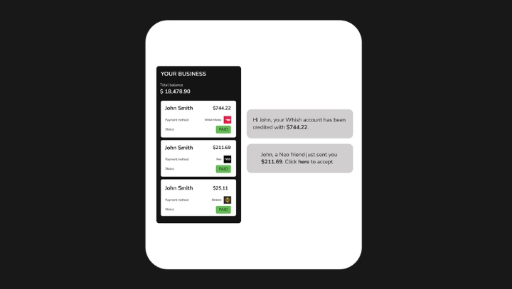 Pay merchants and clients fast with cashouts every Friday via Whish, Neo, Binance, or card payments.